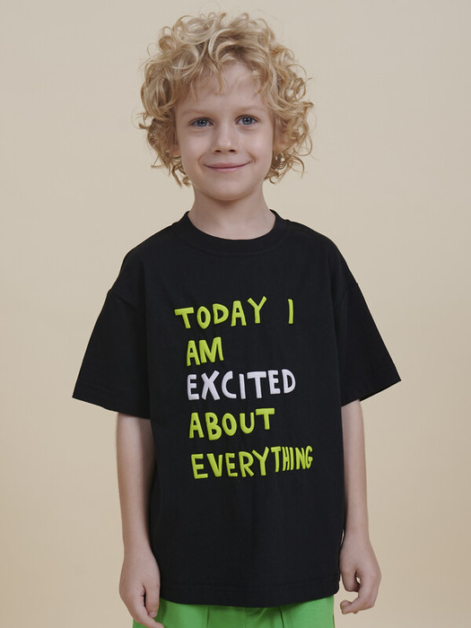 Модель представлена в двух ярких расцветках на выбор. Это черная футболка для мальчика и желтая. Красивый вариант на любой выход. По переду изделия надпись "Today I am excited about everything" – перевод "Сегодня меня волнует всё". Объемный принт с контрастной надписью. Прикольная футболка с принтом привлекает стильным дизайном. Размерная линейка: 1 (86); 2 (92); 3 (98); 4 (104); 5 (110); 6 (116); 7 (122); 8 (128); 9 (134); 10 (140); 11 (146).