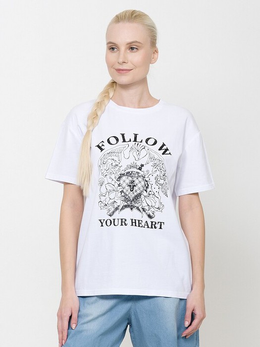 Футболка большого объема. Суперпрочный принт с глиттером и стразами. Перевод Следуй за своим сердцем.