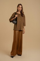 Комплект женский футболка и брюки. Футболка прямого кроя среднего объема. Мягкий стойкий принт с золотым металликом. Перевод Я не идеальная, я оригинальная.. Бриджи комфортного объема. По талии на плоской внутренней резинке, по низу манжеты шириной 7 см., all over принт.