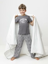 Стильная и уютная пижама для мальчика. В составе ткани 100% хлопка — идеально для детской одежды! Модель приятна на ощупь, прекрасно пропускает воздух, позволяя коже ребёнка дышать. При этом в пижаме из хлопка ребёнку будет уютно, даже если он сбросит одеяло. Всё это обеспечивает комфортный и качественный сон. Футболка и удлинённые шорты, плечо спущено, рукава широкие и свободные — пижама на мальчика очень удобна для сна. Широкая и мягкая резинка в поясе не перекручивается и не давит. Отделка горловины из эластичной рибаны — она не растягивается, ребёнку удобно надевать и снимать пижаму. Хлопковый комплект идеален для сна и отдыха дома — прекрасный выбор для вашего ребёнка! Пижама с шортами для мальчика подходит для круглогодичного использования. Домашний комплект — замечательный подарок сыну, внуку, брату на любой праздник. Выбирайте нужный размер по таблице размеров на фото. Цвет товара на экране вашего устройства может отличаться от цвета изделия вживую.