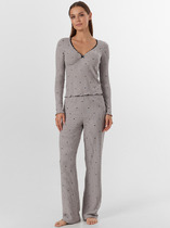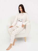 Костюм пижамный женский. В составе ткани преобладает высококачественный хлопок — комплект для сна мягкий, гипоаллергенный и воздухопроницаемый. В хлопковой пижаме вам будет тепло и уютно во время сна. Эластан помогает модели надолго сохранить первоначальную форму. Джемпер и брюки умеренного объёма, плечо немного спущено, рукава широкие и свободные — в пижаме очень удобно спать. В поясе брюк мягкая и широкая резинка — не перекручивается и не давит. Отделка горловины из эластичной рибаны — она не растягивается, пижаму удобно надевать и снимать. Хлопковая пижама украшена милым, «няшным» принтом в виде собачки корги, надпись переводится: «ленивый момент с моей собакой». Пижамный костюм неприхотлив в уходе. Принт эластичный и стойкий, хорошо переносят частые стирки. Пижама женская с брюками подходит как для сна, так и просто для отдыха дома, пижамной вечеринки. Помните о правильном уходе за изделием: рекомендуется стирать при температуре не выше 30 °C, без предварительного замачивания, с изнанки. Это поможет сохранить качество и цвет пижамы на длительное время.