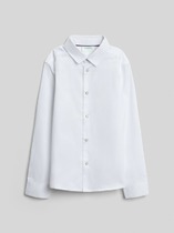 Школьная рубашка для мальчика прямого силуэта подойдет для разных типов фигур. Выдержит любую активность подростка. Ткань мало мнётся, хорошо держит форму, а загрязнения легко отстирываются.