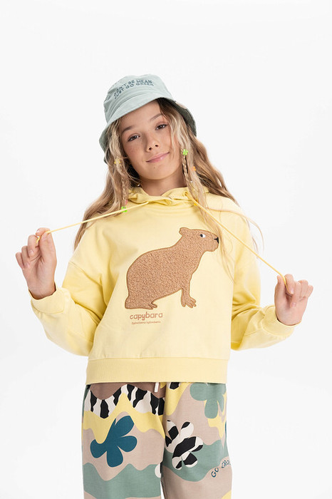 Модную толстовку с мягким принтом из меха идеальна для девочки подростка. Свитшот из высококачественного хлопкового футера можно носить круглый год весной, летом, осенью и зимой. Короткая кофта с капюшоном подойдет для повседневной носки на занятия, в школу, в сад и на прогулку.