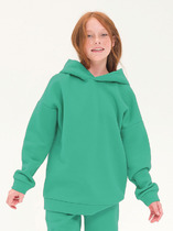 Худи оверсайз из футера для девочки. Натуральный хлопок и 5% эластана в составе – тело дышит, ткань меньше мнется и дольше сохраняет аккуратный внешний вид. Широкие рукава, сильно спущенное плечо и свободный крой – настоящий трендовый оверсайз. Теплый и удобный капюшон – объем регулируется плетеным шнуром с декоративными кисточками. Тонкая эластичная обработка низа рукава и изделия – держит форму, мягко облегает, комфортно носится. Цветная вышивка спереди для позитивного настроения. Худи составляет гармоничный дуэт с джоггерами или велосипедками. Идеально для активного детства – на каждый день, для учебы и занятия спортом.