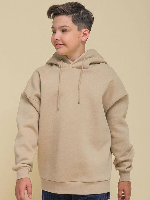 Детское худи с капюшоном для мальчика. Толстовка оверсайз-силуэта со спущенным плечом не будет стеснять движений ребёнка и подарит комфорт. Объёмное худи средней длины актуально в этом сезоне. Манжеты и пояс по низу изделия выполнены из эластичной рибаны (ткань в рубчик) — она не растягивается, сохраняет отличную форму надолго. Капюшон с двумя швами — это обеспечивает анатомически правильную форму и комфортную посадку по голове. Капюшон двойной, швы закрыты. Шнуром можно регулировать высоту и объём.  Толстовка неприхотлива в уходе. Худи с принтом на спине выполнено из ткани с высоким содержанием качественного хлопка (футер с начёсом), что обеспечивает мягкость и хорошую воздухопроницаемость. Благодаря полиэстеру худи сохраняет цвет и форму в течение длительного времени. Модный принт в плакатном стиле изображает домик с текстом «уютный дом, который побуждает тебя мечтать», «счастливый дом полон цвета». Принт эластичный и стойкий, отлично переносит частые стирки. Худи бежевое — универсальный цвет, толстовку легко сочетать с брюками разных цветов. Размерная линейка: 1 (86); 2 (92); 3 (98); 4 (104); 5 (110); 6 (116); 7 (122); 8 (128); 9 (134); 10 (140); 11 (146). Стильное худи оверсайз для мальчиков и подростков. Худи с начёсом подходит для круглогодичной носки: осенью и весной (демисезон), зимой, в прохладную погоду летом. Толстовку можно носить в детский сад, на прогулки, на отдых, а также дома. Прекрасный подарок сыну, брату, внуку или племяннику на Новый год и любой другой праздник.