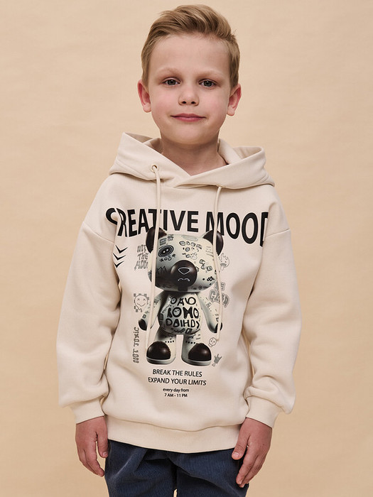 Толстовка детская из футера с начёсом для мальчика. Худи трендового оверсайз-силуэта со спущенным плечом подарит ребёнку комфорт и не будет стеснять его движений. Толстовка с капюшоном защитит от холода и ветра. Модель дополнена манжетами из эластичной рибаны по низу и рукавам. Рибана не растягивается и надолго сохраняет отличный внешний вид. Изделие неприхотливо в уходе. Толстовка на мальчика выполнена из ткани с высоким содержанием хлопка — модель мягкая, воздухопроницаемая и гипоаллергенная. Благодаря полиэстеру худи износостойкое, сохраняет форму даже после множества стирок. Изделие выполнено в универсальной расцветке, без проблем сочетается с любыми брюками, джинсами. Толстовка по переду декорирована принтом в актуальном готическом стиле, надписи переводятся: «креативное настроение», «нарушать правила», «расширяйте границы своих возможностей каждый день с 7 утра до 11 вечера», «не в настроении, не токсичный, будь радостным». Принты эластичные и устойчивые, не боятся частых стирок. Отличное худи оверсайз для мальчиков дошкольного и младшего школьного возраста, а также подростков. Джемпер подходит для детского сада, прогулок, отдыха, дома. Худи с капюшоном для мальчика подходят для круглогодичной носки. Помните о правильном уходе за изделием: рекомендуется стирать при температуре не выше 30 °C, без предварительного замачивания, с изнанки. Это поможет сохранить качество и цвет толстовки на длительное время.