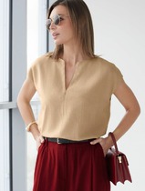 21.04 Vilatte Свободный топ с V-вырезом и цельнокроеным коротким рукавом изо льн