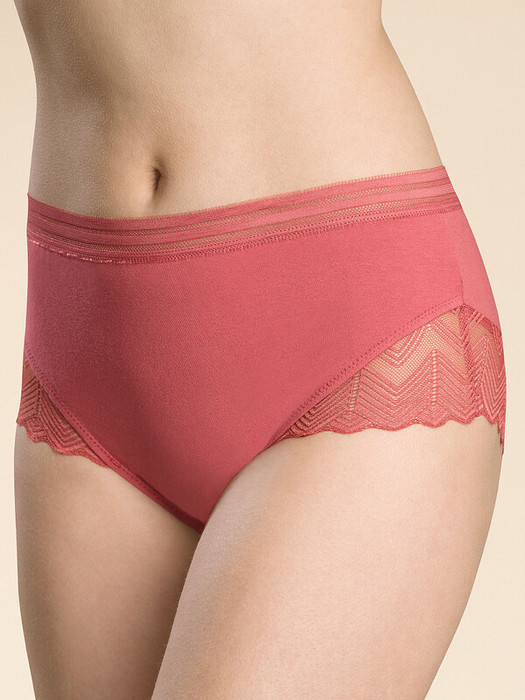 Женские трусы-шорты с высокой посадкой для влюбленных в красивый и активный образ жизни. Ткань с высоким содержанием хлопка и небольшим содержанием эластана. По линии талии мягкий принтованный эластик - не передавливает тело, не натирает кожу. Обработка по ноге двухниткой – шов не деформируется. Нежное геометричное кружево отражает тренд на умный дизайн.