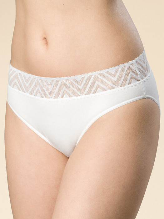 Женские трусы-слипы со средней посадкой. Приятная на ощупь ткань с высоким содержанием хлопка и небольшим содержанием эластана – трусы сохраняют форму и не выцветают даже после частых стирок.  Мягкая широкая обработка по линии талии кружевным эластиком – не вызывает дискомфорта и не передавливает тело. Нежное геометричное кружево актуально в этом сезоне. Модель подчеркивает изящество фигуры и создаёт комфорт. Идеально подходят для повседневной носки, для сна и для романтических встреч.