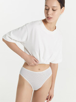 Женские трусики стринги. Низкая посадка. Обработка эластиком по талии и по ноге. Спереди сочетание сетки и основной ткани, на спинке и полочке кружево. Продольный шов по спинке.