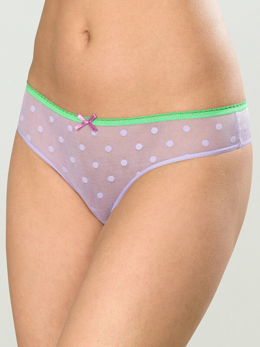 Прозрачные женские трусики-стринги с низкой посадкой. Эластик с сердечками по линии талии, мягкая сетка в горошек, яркие цвета – идеально для лета. Легко и комфортно. Трусы едва заметны и ощутимы под одеждой. Легко комплектовать с топом Pelican.