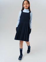 Юбка для школы в новом нестандартном дизайне для тех, кому наскучили традиционные формы. Сложный крой переда с наклонными складками по бокам создает дополнительный объем, а центральная часть изделия расширяется книзу, чтобы не стеснять движения. Сзади юбка застегивается на потайную молнию, а в поясе предусмотрен внутренний эластик, позволяющий регулировать размер изделия до нескольких сантиметров.