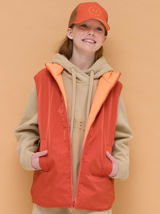 Двусторонний жилет для девочек умеренного объема с увеличенной проймой. Жилет утепленный (синтепон 60г/м2 в два слоя) c вертикальной отстрочкой. Наличие в составе ткани мембраны делает жилет максимально комфортным при носке. Курточная ткань с водоотталкивающим покрытием. Рекомендуемый температурный режим: не ниже +5°С. Тракторная молния максимально прочная, не заедает. Прорезные карманы с листочкой - не порвутся и удобно пользоваться. Одна сторона жилета из новой фактурной ткани с имитацией вафли, приятная на ощупь - для тех, кто разбирается в моде.