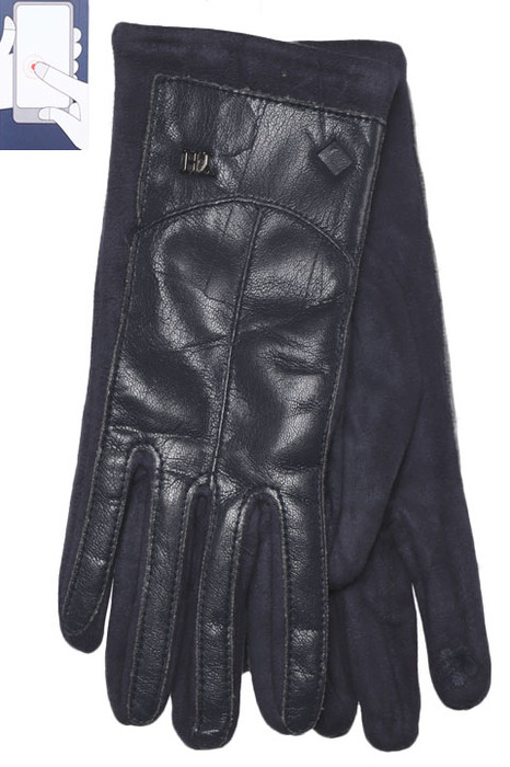 Подклад: Велюр Тип изделия: Перчатки Состав: Иск. замша Место: П2-3-К2Перчатки женские сенсорные (нашивка на кончике указательного пальца), выполнены из иск.замши на велюровой основе сверху вставка из иск.кожи.