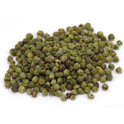 Зеленый перец горошком считается самым деликатным по вкусу. Это идеальный ароматизатор для соусов, суфле и паштетов, он подходит, чтобы оттенить рыбные блюда при приготовлении на пару. А вот для придания пикантности мясным блюдам и супам его чаще используют в составе перечной смеси. Очень важное положительное свойство для женщин — не стимулирует чувство голода. То есть можно наслаждаться вкусными пикантными ароматными блюдами, не опасаясь того, что «аппетит разыграется». Лучший ароматизатор аперитивов — зеленый перец горошком.Можно добавлять в мясные блюда детской кухни, при возрасте ребенка от 2 лет. Накормить малоежку трудно, и ароматная добавка придется как никогда кстати. Зеленый перец в горошке принято добавлять в блюда на последних минутах, перед самым выключением или уже потом, когда емкость с готовым блюдом сняли с огня. Если закрыть крышку и дать настояться 15 минут, блюдо приобретет пикантный аромат. При термической обработке эфирные масла полностью разрушаются, и добавка становится бесполезной и как ароматизатор, и как ингредиент для оздоровления организма. Перечный соус к мясу. Луковицу мелко шинкуют и обжаривают до золотистого цвета. Смешивают с перечной смесью — по половине чайной ложки белого, зеленого, душистого и розового перца в горошке, вливают коньяк и поджигают. Как только он выпарится, огонь гаснет. Вливают стакан густых сливок и уваривают, пока количество сливок не уменьшится наполовину. Подают в горячем виде. При презентации горячим соусом заливают только что поджаренный стейк. Но если соус охладел, огорчаться не стоит, он вкусен и холодный.