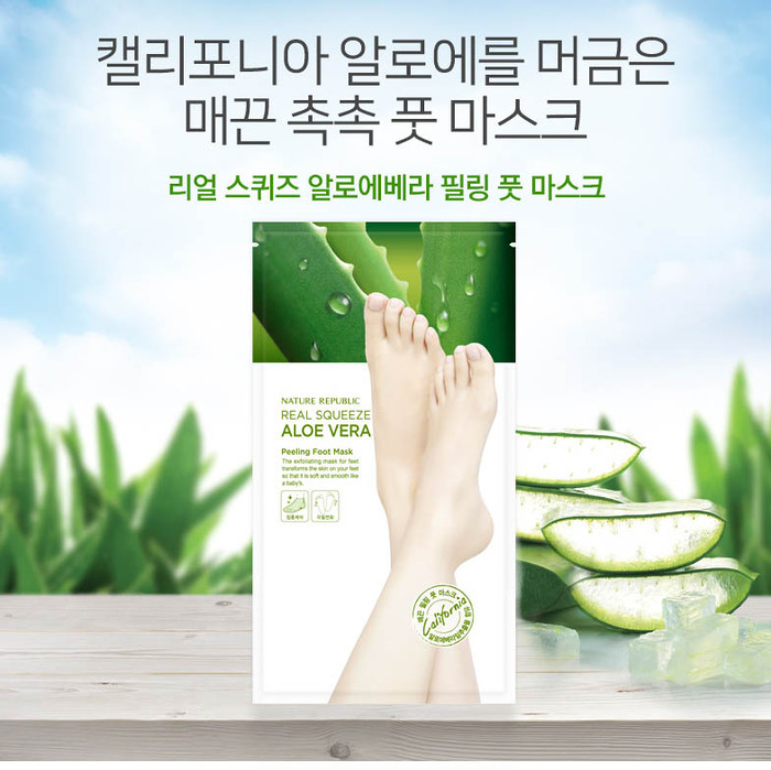 Пилинг-маска для ног с экстрактом Алое Вера NATURE REPUBLIC Real Squeeze Aloe Vera Peeling Foot Mask. 2x25g.