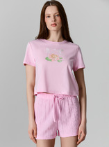Домашний костюм - кофта с запахом, на завязках, окантовка. Бриджи с принтом - зайцы и горох