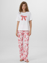 Мягкая пижама из вискозы состоит из майки и шортиков. Вырез топа, низ топа и шорт декорированы эластичным кружевом.