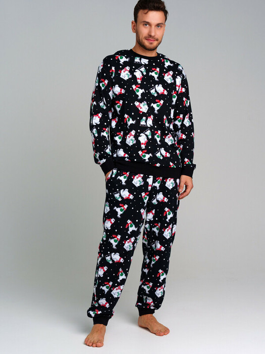 Пижама взрослых размеров: лонгслив, брюки из натурального хлопкового двойного трикотажа. 100% хлопок. Эластичные манжеты. Эластичный пояс брюк обеспечивает комфортную посадку. Можно составить family look с детским вариантом пижамы аналогичного дизайна.