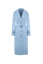 Двубортный плащ с поясом способен подчеркнуть красоту женской фигуры. Традиционный классический образ дополнен декоративными элементами, делающими модель более эффектной. К таким деталям можно отнести пагоны, создающие иллюзию более широкого плеча, ремешок на горловине, меняющий форму воротничка, а также затягивающие ремешки на рукавах, с помощью которых можно укоротить их длину. Модель прекрасно смотрится без пояса, идеально скрывая все особенности фигуры.