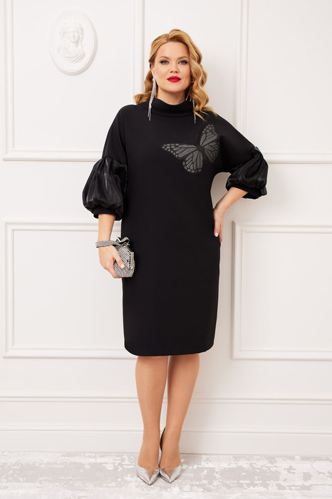 Роскошное нарядное платье, выполнено из плательной ткани Барби с добавлением вискозы. Платье полуприлегающего силуэта, по переду декорировано роскошной печатью Бабочка, что придает платью особый шарм. Рукав спущенный, выполнен в стиле фонарик, с отделкой из органзы. Горловина платья выполнена в стиле хомут. Модель стильная и практичная, невероятно стройнит, прекрасно подойдет для торжественного мероприятия, вы будете выглядеть неотразимо и роскошно.