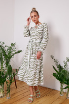 Стильное и элегантное платье выполнено из высококачественной плательной ткани с добавлением хлопка и вискозы. Платье по переду с застежкой на молнию (100 см), накладными карманами и декорировано пришивными пуговицами. По талии платье декорировано съемным поясом (тесьма может отличаться от той, что указана на фотографии) с пряжкой-застежкой и резинкой, что придет модели особый шарм. Рукав платья втачной, с манжетой и застежкой на две пуговицы. Горловина платья с воротником стойкой. Платье без подкладки. Модель стильная и практичная, прекрасно дополнит ваш гардероб, вы будете выглядеть неотразимо.