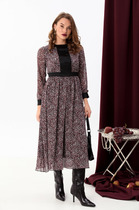 Элегантное нарядное платье, выполнено из роскошной струящейся плательной ткани с добавлением вискозы. Платье с имитацией запаха по переду, отрезное по линии талии. В боковом шве платья потайная молния застежка. Рукав цельнокроеный, спущенный. Спинка платья отрезная по талии, с резинкой. В комплекте идет съемный пояс, декорированный пришивным украшением (Украшение может отличатся от фотографии!), с резинкой и застежкой на пуговицы в цвет платья. Модель удобная и практичная, вы будете в нем выглядеть неотразимо и нарядно.