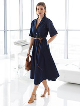 Vilatte Платье в стиле сафари с отложным воротником D22.253 синий