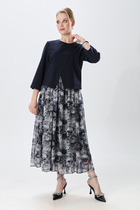 Платье А- образного силуэта, на подкладке. Перед с нагрудными выточками. Спинка со средним швом с разрезом и застёжкой на навесную петлю и пуговицу. Рукава втачные, одношовные, короткие.