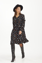 Платье с очень насыщенной дизайнерской вышивкой по объемным рукавам. Застежка по пердуна петли и пуговицы. Изделие без подкладки. Карманы в боковых швах.