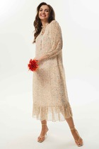 Летнее хлопковое платье с втачным рукавом. По переду застёжка на петли и пуговицы. Низ платья  ажурный ,без  подкладки. В комплекте съёмный пояс.