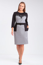 Трикотажное женское платье прямого силуэта, по спинке тесьма -молния.по переду карманы. Рукав со складкой и декоративными пуговицами, на манжете.