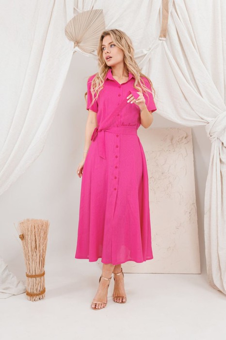 Льняное натуральное платье с акцентной яркой вышивкой на талии. Застежка по переду на петли ипуговицы, в боковых швах карманы, пояс сьемный.