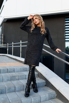 Трикотажное платье средней длины, с красивами рукавами на сборке по низу. Горловина-лодочка с тонкой элегантной бейкой. Особенно красивый трикотаж - немного меланжевый и имеет еле-заметную тончайшую люриксовую ниточку, При чем, блеск настолько мягко проигрывается, что очень мало заметен, но в то же сремя придает богатства и эффектого вида изделию. По этому платье прекрасно подойдет для любого случая в жизни.