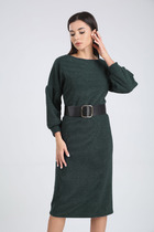 Трикотажное платье средней длины, с красивой горловинкой - стойкой.   Особенно красивый трикотаж - немного меланжевый и имеет еле-заметную  тончайшую люриксовую ниточку, При чем, блеск настолько мягко проигрывается, что очень мало заметен, но в то же сремя придает богатства и эффектого вида изделию. По этому платье прекрасно подойдет для любого случая в жизни.