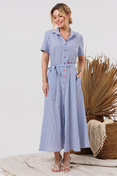 Vilatte Платье из премиального хлопка с вышивкой на рукаве D42.090 лазурный