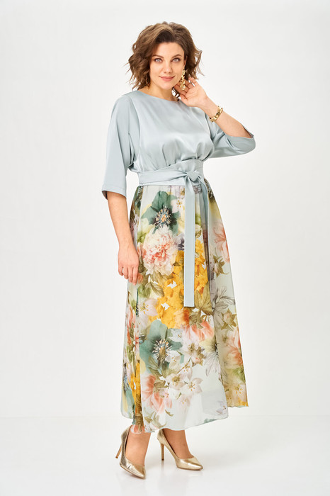 Платье Anastasia Mak 1229-Ш голубой+цветы