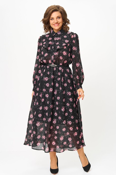 Платье из приятного шифона с цветочным принтом станет идеальным выбором для любого случая. Длина макси и свободный крой создают элегантный силуэт, а волан с кружевом добавляет женственности и романтичности. Модель с длинными рукавами с манжетами по низу, с воротником на стойке и застежкой спереди на пуговицах удобна в носке и подчеркивает достоинства фигуры, а ремешок из экокожи подчёркивает линию талии.
