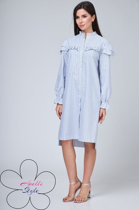 На переде и спинке выполнены отрезные кокетки, украшены рюшем.