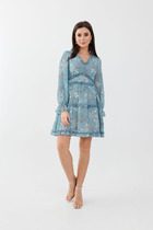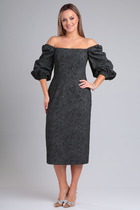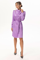 Платье женское, приталенное, длина до колена. На подкладке. Рукав втачной, длинный, на запястьи резинка. V-образный вырез по переду горловины. Платье резное под грудью, по талии и по линии бедра, декорированно рюшами.
