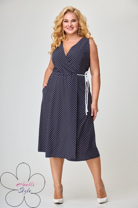 Платье ANELLI 1055.1 синий+горох