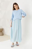 Платье женское полуприлегающего силуэта, длиной ниже колена. Рукав втачной, длинный, низ на манжете. По переду планка до линии талии на петли пуговицы. Горловина обработана классическим воротником на стойке. По линии бедра отрезной волан на сборке. Дополнительно талию можно подчеркнуть при помощи съемного пояса. Платье станет вашим лучшим другом и в нем вы будете выглядеть на все 100.