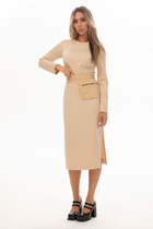 Платье женское прилегающего силуэта, длина выше колена. Рукав втачной, длинный, внизу на резинке. По переду квадратный вырез горловины изящно подчеркивающий декольте. По спинке в среднем шве потайная застежка молния. Прилегание достигнуто при помощи талиевых вытачек. Платье выполнено из трикотажного полотна с бархатистой поверхностью, женственное, стильное, отлично смотрится на любой фигуре и при этом в нем вам будет комфортно.