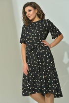Платье женское, оверсайз, длиной до колена. Рукав втачной со сборкой по окату, низ на резинке, длина 3/4. Платья отрезное по талии, юбка на сборке. По переду квадратный вырез горловины, выгодно подчеркивающий вашу шею и лицо. На спинке глубокий V-образный вырез, на двух уровнях функциональные завязки. Верхнюю завязку рекомендуем сильно не затягивать, так как будет затягивать горловину переда. Отличный и стильный вариант для прогулок и работы, а уникальный материал позволит вам чувствовать себя комфортно в платье, как летом, так и осенью.