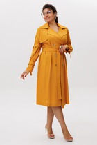 Двубортная застёжка на пуговицы, лацканы и отложной воротник на стойке добавляют ноту английской сдержанности, а свободные втачные рукава с патами и карманы вносят функциональность и динамику. Завязывающийся пояс мягко обозначает талию, позволяя играть с пропорциями.