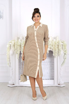 Это платье цвета «дымчатый нефрит», в котором каждая деталь дышит романтикой и безупречным вкусом. Мягкий силуэт с отрезной линией талии словно обнимает фигуру, создавая идеальный баланс между невесомостью и структурой. Длинные рукава, мягко присборенные у изящных манжет, хранят в себе загадку, а маленькие разрезы, скреплённые перламутровыми жемчужинками, добавляют образу трепетной нежности.
