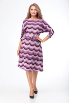 Платье прямого силуэта, по переду центральный шов, рельефы, переходящие в бочок. В рельефах рабочие карманы. Вырез горловины округлый. Пройма с притачной фигурной деталью. Спинка со средним швом и талевыми вытачками.