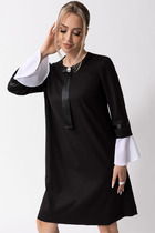 Сложные и точно вымеренные линии платье по горловине отделано фигурной кокеткой.