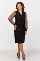 Платье полуприлегающего силуэта с округлой горловиной. Перед с нагрудными вытачками. Спинка с талиевыми вытачками, застежкой молнией и разрезом в среднем шве. Рукав втачной прямой длинный, на резинке по низу.