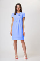 Платье полуприлегающего силуэта выполнено из полотна с контрастным принтом. Характеристики: полуприлегающий силуэт, отрезное , горловина овальная, рукав свободного кроя цельнокроеный, по низу рукава резинка, застежка потайная тесьма молния в среднем шве заднего полотна изделия. Длина по спинке 84 см длина рукава от края горловины 73 см.